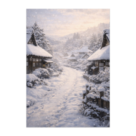 ポスター - B2この商品はpixivFACTORYで作られた商品です。サンプル画像は完成イメージのため、実物と異なる場合があります。 人の気配が消えた雪の田舎道。 新年の朝にだけ訪れる、特別な静寂。 降りすぎない雪と柔らかな光が、 「日常に戻る直前」の時間を静かに描きます。 冬と正月、どちらの季節にも馴染むポスターです。