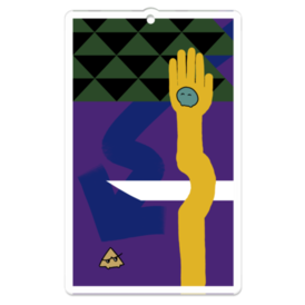 アクリルキーホルダー - 70 x 70 (mm)【Art Selection】幾何学と手のひらの住人 アクリルキーホルダー 鮮やかなパープルとイエローのコントラストが目を引く、アート性の高い一品。 幾何学的な背景の中に、すっと伸びた手。 その手のひらには、穏やかな表情を浮かべた不思議な住人がちょこんと乗っています。 足元にいる三角形のキャラクターのクールな表情もアクセント。 ポップさとシュールさが同居した、抽象画のような世界観を日常のアクセントに取り入れてみませんか? バッグにつければ、パッと目を引くオシャレなアイコンに。 デザイン性の高いグッズを好む方や、個性的なイラストを探している方にぴったりです。