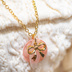 やさしいピンク色のシェルパーツに、 ゴールドのリボンモチーフを添えた、 Nonoka de Fleur シリーズらしい、日常使いのためのデザイン。 このネックレスは、 野乃花さんが「自分の好きなもの」──リボン、ピンク色、やわらかな光──を集めて、 普段の装いに合わせるために作ったというイメージから生まれました。 ピンクのシェルパーツは天然素材のため、 色味や模様には一つひとつ個体差があります。 それぞれ異なる表情も、この作品ならではの魅力としてお楽しみください。 冬の装いにも合わせやすいよう、 アジャスターはやや長めに設計しており、 ニット服や厚手のお洋服の上からでもバランスよく身につけていただけます。 ⸻ 仕様 • カラー:Gold(1色展開) • モチーフ:ピンクシェルパーツ、ゴールドリボン • 素材:シェルパーツ、メタルパーツ • 仕様:アジャスター付き(長め) • シリーズ:Nonoka de Fleur