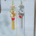 和装向け アシンメトリー髪飾り(Gold / Silver) 新しい年の始まりや、晴れの日の装いをイメージした Petit Étoile – Hare no Hi シリーズの髪飾りです。 デザインには、 縁起の良い意味を持つ球体モチーフに加え、 吉祥結び(きっしょうむすび)を取り入れています。 吉祥結びには 「良いご縁を結ぶ」「幸せが続く」「調和と繁栄」 といった意味が込められており、 新年や節目の日にふさわしいモチーフとされています。 重なり合う球体と結びのモチーフに、 揺れるチェーンタッセルを添えることで、 動くたびに静かなきらめきが生まれ、 後ろ姿にも華やかさと奥行きを与えます。 デザインはアシンメトリーですが、 前後を特に気にせず、お好みの向きでご使用いただけます。 ⸻ 仕様・ご案内 • カラー:Gold / Silver(2色展開) • 仕様:ピアス金具付き髪飾り (ウィッグネット・ウィッグに差し込んで使用) • 販売:片側のみ • 素材:メタルパーツ、ビーズ、チェーン • シリーズ:Petit Étoile – Hare no Hi ※両側での使用をご希望の方は、 ご購入後にメッセージをいただけましたら、 左右が対になるようオーダー制作いたします。
