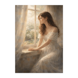 ポスター - B2この商品はpixivFACTORYで作られた商品です。サンプル画像は完成イメージのため、実物と異なる場合があります。 やわらかな午後の光に包まれ、 窓辺で静かに外を見つめる女性のひととき。 何も語らない横顔と、揺れるカーテン。 日常の中にある、穏やかな感情の余白を描いた 油絵風アートポスターです。 お部屋に、静かな時間を添えてくれる一枚。