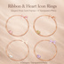 【アイコンリング】リボン&ハートジュエル アイコンリング 4点セット|ローズゴールド・大人ガーリー・透過PNG