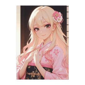ポスター - B2この商品はpixivFACTORYで作られた商品です。サンプル画像は完成イメージのため、実物と異なる場合があります。 淡いピンクの振袖に身を包んだ、やさしい雰囲気のギャル振袖ポートレートです。 現代アニメイラスト調で、上品さと可愛らしさを両立した一枚に仕上げました。 お部屋のインテリアや、やわらかい雰囲気を演出したい空間におすすめです。