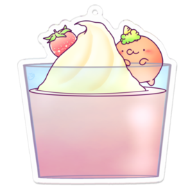 いちごを使ったクリーミーなカクテルに乗っちゃった! …何だか幸せそうだけどトッピングにしか見えないよ! おにちゃんが乗ったのは甘いクリーミーなカクテルです。フレッシュないちご付き! 50mmのアクリル製のキーホルダーです。小さいので鞄に入れても邪魔になりません。 でも酔っ払い妖怪に鍵を預けるのはちょっぴり心配? いえいえ、頑固なのでうっかりしない限りは離しません! 連れて歩くのにも邪魔になりませんが…マシュマロをねだられてしまうかも? 70mmが新しく登場!マシュマロ食べ過ぎてちょっと大きくなりました。