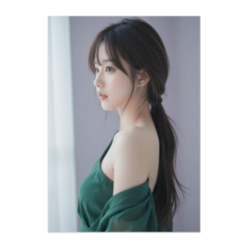 ポスター - B2この商品はpixivFACTORYで作られた商品です。サンプル画像は完成イメージのため、実物と異なる場合があります。 遠くを見つめる横顔が印象的な、 ポニーテールのリアル美女ポスターです。 グリーンのドレスと自然光が、 静けさと物語性を感じさせる一枚。 落ち着いた空間演出におすすめです。