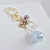 幻想的なパールチャームと宇宙モチーフが素敵な大ぶりサイズのお洒落キーホルダー(淡いパープルブルー)