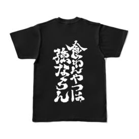 ブラック-XL【メシ、食うてるか?】 格闘ゲームコミュニティで狭くも流行した、あの格言がついにグッズ化! ゲームに限らず、食うてへんと何も始まらんで。身にまとえば、この想いはいつも一緒や。