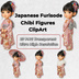 振袖姿のちびキャラ女性 クリップアート 27ポーズセット|6KサイズPNG,透過背景,日本の礼儀作法に則った素材