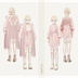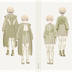 光沢感のある生地のセットアップに、柔らかく包んで 滑り落ちるような流れのファーカーディガンを重ねて ファーベストのように長めのつけ襟を合わせました。 つけ襟の後ろ羽根がはみ出たようなファーの飾りと ケープつきの丸みシルエットの変形コートとの間に 絞ったようなかたちのファーの襟巻きを挟みこんだ、 ふかふかでふくふくとしたコーディネートセットです。