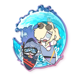 サーフィン!背面がキラキラのアクキーです 背景多めでキラキラが映えそうなイラストで作ってます この商品はpixivFACTORYで作られた商品です。サンプル画像は完成イメージのため、実物と異なる場合があります。