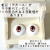 アニメ調でハッキリくっきりした色合いの、マジメちゃんな印象を与えるアイです。 虹彩が小さめなので、大きな目のドールちゃんに使うと三白眼、びっくり目にもできます。 男の子カスタムヘッドにも似合うかも? 【制作法】 デカールをアクリル土台に貼り付け、レジンでコーティングしています。 ラメは入れていません。 サイズ:20mm 虹彩サイズ:10mm×7mm(誤差あり) DD、MDD、その他1/4ヘッドにおすすめです。 ヘッドのモデルはDDH28、imomodoll didiです。 ※目袋があるとアイがはまらない可能性が非常に高いのでご注意ください。アクリル土台は少しフラットめな形状です。 ※こちらはB品となります※ 以下の事項が見られる場合がございます ・レジンコーティングの段差 ・デカールの皺、微細な欠け、滲み ・チリの混入 また、画像と色合いが異なる場合がございます。 ⭐︎「3.カフェインブラウン」は、現在の在庫がデカールの欠けが大きいためお値引きしています (6.7枚目お写真のものです) 著しく外観に影響のあるものは弾いています。 B品の特性をご理解いただける方にご購入いただければ幸いです。 ※価格は送料込みです。匿名配送ではないのでご注意ください。