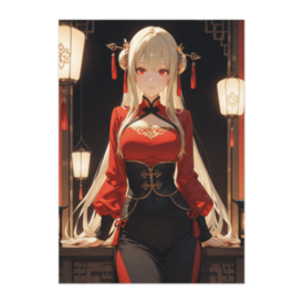 ポスター - B2この商品はpixivFACTORYで作られた商品です。サンプル画像は完成イメージのため、実物と異なる場合があります。 赤と黒のコントラストに、金の装飾が映える華やかな中華ドレススタイル。 凛とした立ち姿とやわらかな表情で、強さと可憐さが同居するビジュアルに仕上げました。