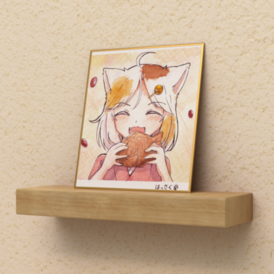 色紙 - ミニ(H135 × W120mm)透明水彩で描かれた三毛猫とたい焼きのイラストがデザインされております。 (作者のサイン入り) 長方形の色紙サイズに合わせるため、ややデザインがカットされております。 この商品はpixivFACTORYで作られた商品です。サンプル画像は完成イメージのため、実物と異なる場合があります。