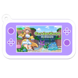 『走れ!クレアちゃん』クレアクランが制作したゲーム「走れ!クレアちゃん」や「ガーデンハント」のキービジュアルが表示されたゲーム機風のミニアクリルキーホルダーです