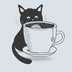 お茶と黒猫|シンプルでかわいいミニマル猫ウォールアート
