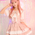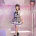 ビジュー付きリボンタイ(取り外し可能)付属 ・ ウエストベルト風デザイン(取り外し不可) ・ 多層フリルのスカート裾で、ステージ映えするシルエット ・ リボン装飾や人工パールボタンを随所にあしらった拘り仕様 ・ 背面は編み上げ仕様で、ウエストラインを美しく調整可能