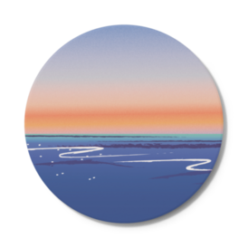 コースター - 円形夕焼けの海のイラストのコースターです。 【仕様】 材質:白雲石、コルク 印刷:UV硬化インクジェットプリント ※この商品はpixivFACTORYで作られた商品です。サンプル画像は完成イメージのため、実物と異なる場合があります。