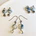 ブルーとホワイトの組み合わせですが、これは夏より冬かと思い。 アパタイトとカルサイトの二種類を絡めて接着した、コンポジットストーン、あるいはブレンドストーンと呼ばれるものです。 コンポジットストーンの多くはコッパー(銅)で接着するため、金継ぎのようにコッパーの色が表出するものですが、こちらはそういった継ぎ目がほとんど見られない、少々珍しいもの。鮮やかなブルーとホワイトのコントラストがぱっきりしています。 サージカルステンレスのキューブを下げて、シンプルなデザインに仕上げました。普段遣いに是非どうぞ。A・B・Cの三種類から、お好みのものをお選びください。 今回もお色み確認用の近接写真を掲載しています。 ご確認ください。 使用パーツ ●アパタイトカルサイト ●サージカルステンレスフックピアス ●サージカルステンレス丸カン ●サージカルステンレスワイヤー ●サージカルステンレスチャーム 金具変更 ●可 作り替え ●可 おことわり ●可能な限り丁寧に制作しておりますが、素人のハンドメイド品です。市販品ほどの強度・完成度はございません。ご了承の上、優しく扱っていただけますと幸いです。 ●14kgf、サージカルステンレスは、ともに金属アレルギーが出にくいとされる素材ですが、すべての方にそれが保証されるという訳ではありません。異常を感じられた場合は、すぐ、ご着用をお止めください。 ●天然石を用いているため、作品はすべて一点ものです。いずれも完全に同一デザインでの再販は難しいこと、あらかじめご了承くださいませ。