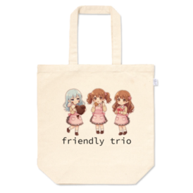 Friendly Trio - 仲良し3姉妹のカフェ風トートバッグ(キャンバス地)