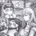 セシルに質問するスノーホワイトの色紙イラスト 原画
