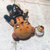 ご覧いただきありがとうございます♪ こちら執事の歪み帽子、1体の価格になります。 ハニーベア ミモザ 黄色 をカスタムしました。 *ゴシック系のベアーを出来上がりました! 王女の側に常にいる 歪み帽子 34です。 *帽子部分(着脱可) 約7.5cm程の手のひらサイズです。 手足、首が動きます。足裏がマグネットになっています。 ABS、ナイロン製 染料やドール用メイク用品で色付けしています。定着剤等は使用してません。強い摩擦には弱い為、優しくお取り扱いお願い致します。 *お写真用飾り(背景など)は含まれておりません。 *素人のハンドメイドなので、完璧を求める方や神経質な方のご購入はお控え下さい。 *元箱はつきません。