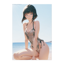 ポスター - B2この商品はpixivFACTORYで作られた商品です。サンプル画像は完成イメージのため、実物と異なる場合があります。 カーキ系の落ち着いた柄とシャープなボブヘアが印象的な、 モダンで都会的な雰囲気のワンピース水着アート。 シンプルながら洗練された佇まいが、空間に大人のアクセントを添えます。