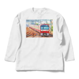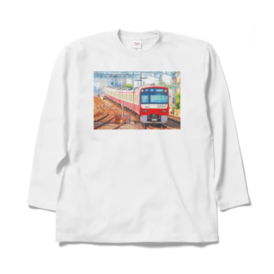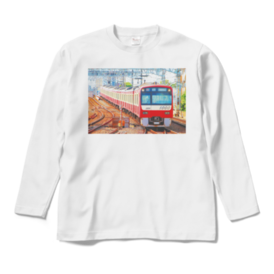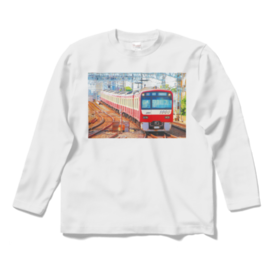 ロングスリーブTシャツ - XL - ホワイト鉄道写真家のオリジナル画像です。京急電鉄の車両です。京成線、北総線、スカイアクセス線、都営地下鉄に乗り入れる車両です。2代目1000形です。京急の主力車両です。是非お買い求めください。