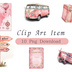 やさしい水彩タッチで描いた、ピンクを基調としたアンティーク風の旅行クリップアートセットです。 バスや飛行機、スーツケース、カメラ、パスポートなど、旅を感じるモチーフを可愛く・上品にまとめました。 全体を淡いピンクカラーで統一しているため、組み合わせて使ってもまとまりがあり、 大人可愛い・ガーリー・ナチュラルなデザインに仕上げたい方におすすめです。 ひとつひとつが単品で使えるクリップアートなので、 ワンポイントとしても、セットとしても自由にご活用いただけます。 ■ セット内容 旅行モチーフのクリップアート 全10点 (例:バス/飛行機/スーツケース/カメラ/パスポート/地図/看板 など) ※すべて個別データで収録されています。 ■ ファイル形式 PNG形式(背景透過) 高解像度・そのまま配置して使える素材です おすすめの使い方 手帳・プランナー・日記のデコレーション ステッカー・ラベル・台紙デザイン スクラップブック・アルバム制作 SNS投稿・ブログ・Webデザイン素材 ハンドメイド作品やデジタルコンテンツ制作 やさしい色合いなので、女性向け・旅テーマ・ナチュラル系デザインと相性抜群です。
