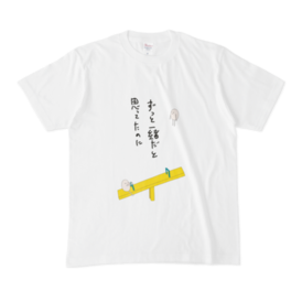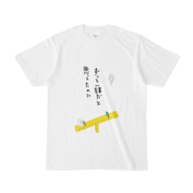 Tシャツ - XL - 白「えっ、どこ行くの……?」 シーソーで遊んでいたはずが、なぜか一方が空高く飛んでしまった……。 そんなシュールでちょっぴり切ない一瞬を切り取ったオリジナルイラストTシャツです。 シンプルながらも目を引く黄色いシーソーと、対照的な表情を浮かべる卵たちのキャラクターがポイント。 モノトーンコーデのアクセントや、日常のちょっとした遊び心にぴったりの一枚です。 【商品仕様】 生地:綿100% 織り:天竺 印刷:インクジェット印刷 サイズ:S、M、L、XL ※この商品はpixivFACTORYで作られた商品です。サンプル画像は完成イメージのため、実物と異なる場合があります。