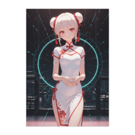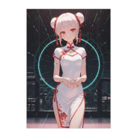 ポスター - B2この商品はpixivFACTORYで作られた商品です。サンプル画像は完成イメージのため、実物と異なる場合があります。 未来都市の静かな夜景を背に佇む、白を基調としたチャイナドレス姿のサイボーグ少女。 伝統的な意匠と近未来的な構造が溶け合い、凛とした表情の中にやさしさと気品を感じさせます。 SFと東洋美が調和した、鑑賞用アートポスターです。
