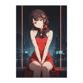ポスター - B2この商品はpixivFACTORYで作られた商品です。サンプル画像は完成イメージのため、実物と異なる場合があります。 夜の都市を見下ろす場所に腰掛け、やさしく微笑むチャイナサイボーグの少女。 人間らしい仕草と胸部に宿る機械の鼓動が、静かな物語を感じさせます。 落ち着きと未来感を併せ持つ、情緒的なSFアートポスターです。
