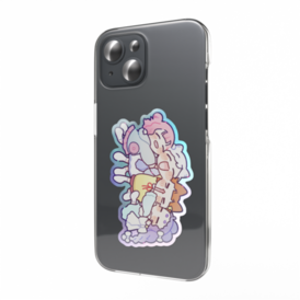 オーロラスマホステッカー - 縦左から ・うきわなぎさ ・雪乃うみ ・ライチャン ・ぷに 仲良しなキーホルダーです この商品はpixivFACTORYで作られた商品です。サンプル画像は完成イメージのため、実物と異なる場合があります。