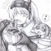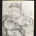 カツ丼を食べるスノーホワイトの色紙イラスト 原画