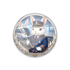 ピンバッジ - 丸形25mmうさ瓶ランド国営モノレールマスコットキャラ"ぴょん速くん"と"ピョン速号"のエンブレムデザインピンバッジ ちょっとしたアクセントに、キャップやトートバッグにつけても可愛いサイズ (*この商品はpixivFACTORYで作られた商品です。サンプル画像は完成イメージのため、実物と異なる場合があります。)