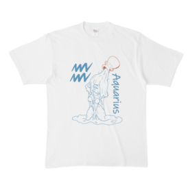 Tシャツ - XL - 白器からこぼれる水のように、自由に広がる水瓶座の思考。 枠にとらわれない感性を、軽やかな線で表現しました。 ひらめきを信じて動きたい日に。