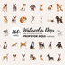 200点セット|水彩犬クリップアート PNG|160匹の犬+ハロウィン&クリスマス イラスト各20点|カード・ステッカー・DIY用 デジタルイラスト 素材