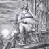 夕焼けに佇むスノーホワイトの色紙イラスト 原画