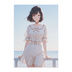 海風に揺れるセーラーワンピースの少女