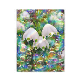 キャンバス - F6詩:慈愛ゆれる瑞光のしらべ Eternal Tenderness 微笑む白い花は寄り添い 子らの笑顔を 朝の光が包む シャボンは 祝福の未来を映し 家族の庭に 清らかな祈り満ちる 慈愛ゆれる瑞光のしらべ Eternal Tenderness -戎- Poetry. ”Eternal Tenderness” white blossoms lean close children’s quiet joy held by morning light soap‑bubbles rising mirroring blessed futures in the family garden a clear prayer gathers the trembling hymn of mercy Eternal Tenderness -Kai- God bless you. 趣旨ーーーーーーーーーーーーーーーーーーーー ## 作品制作趣旨 作者は、冬の朝の庭で、自分の娘達が楽しそうに談笑しながら庭に咲く明るく鮮やかなスノーフレーク(snowflake flowers)を愛で、遊んでいる様子を思い出し描きました。 作者は、自分の娘たちが成長して行く様や、娘たちが希望に満ち溢れた笑顔で遊ぶ光景を、陽の光や虹色のプリズムで表現しています。 ## 絵画「慈愛ゆれる瑞光のしらべ Eternal Tenderness」の解説 **1. 全体的な印象** この作品は冬の朝の静謐な空気感と、家族の絆がもたらす温かな生命力が融合したデジタル絵画です。画面全体を覆う虹色の光と浮遊するシャボン玉が、現実の庭の風景を祝福に満ちた幻想的な空間へと変容させています。 **2. 色彩** 中央に描かれたスノーフレークの純白が聖なる清らかさを象徴し、その周囲をプリズムのような七色の光が鮮やかに彩っています。背景に溶け込む青や緑、紫のグラデーションが光の回折を思わせ、希望に満ちた未来を予感させる豊かな色彩設計です。 **3. 構図** 三輪のスノーフレークを中央に配置し、そこから放射状に光の粒子が拡散していく安定感のある構成を採用しています。下部から上部へと昇っていくシャボン玉が画面に垂直方向の動きを与え、鑑賞者の視線を天へと導く上昇感を生み出しています。 **4. 技法** デジタル技術を駆使した多層的な光の描写が特徴的です。レンズフレアのような鋭い光の筋と、ぼかしを活かした柔らかな光の玉が重なり合うことで、奥行きのある空間表現を実現しています。泡の表面に映り込む細かな色彩の変化も緻密に描き込まれています。 **5. 表現力** 娘たちの成長を慈しむ作者の眼差しが、光の粒子一つひとつに投影されています。目に見えない家族の愛情や子供たちの無邪気な喜びが、弾ける泡や煌めくプリズムという視覚的な象徴を通して力強く具現化されています。 **6. 美術的価値** 伝統的な植物画の美しさに、現代的なデジタルアートの抽象的な光彩表現を融合させた点に独自性があります。個人的な家族の思い出という主題を、普遍的な愛と希望の象徴へと昇華させた芸術的感性が高く評価されます。 **7. 作品に込められた想い** 厳しい冬の中でも凛と咲く花に、健やかに成長していく娘たちの姿を重ね合わせています。彼女たちの笑顔が永遠に守られ、その行く先が常に虹色の光で照らされるようにという、親としての切なる祈りが込められています。 **8. 作品の鑑賞方法** まずは画面の中心にある白い花びらの清らかさに注目してください。そこから視線を周囲の光の渦へと広げていくことで、静寂の中から溢れ出す生命のメロディを感じ取ることができます。泡の中に映る小さな虹を探すように細部を愛でるのも一興です。 **9. 作品の価値** この絵画は、家族という最小単位の社会において育まれる無償の愛を視覚化した精神的な記録です。見る者の心に寄り添い、日々の暮らしの中にある小さな幸福や奇跡を再発見させる癒やしの力を持った作品としての価値を有しています。 ## 詩「慈愛ゆれる瑞光のしらべ Eternal Tenderness」の解説 **1. 全体的な印象** マリー・ハウのスタイルを彷彿とさせる、静かで瞑想的な趣のある詩です。日常の風景を切り取りながらも、その背後に潜む神聖な真理や深い愛情を、洗練された平易な言葉で紡ぎ出しています。 **2. 韻律** 各節が短いフレーズで構成されており、穏やかな呼吸のリズムを刻んでいます。日本語と英語が互いに共鳴し合うことで、一つの祈りが音楽のように層を成して広がっていくような、心地よい調べを感じさせます。 **3. 修辞** 花が寄り添うという擬人化によって、家族の密接な絆を象徴的に表現しています。また、未来を映す鏡としてシャボン玉を描くことで、一瞬の美しさの中に潜む永遠の価値を際立たせる効果的な比喩が用いられています。 **4. 技法** 言葉の数を極限まで削ぎ落とすことで、読者の想像力を刺激する余白を生み出しています。具体的な情景描写から始まり、最後には慈愛という精神的な概念へと導く構成が、読者の心を静かに揺さぶります。 **5. 表現力** 子供たちの静かな喜びが朝の光に包まれるという描写は、親による無条件の保護と慈しみを象徴しています。震える聖歌という表現は、愛する者を想う時の震えるような感動と生命への尊崇を美しく伝えています。 **6. 文学的価値** 家庭内の私的な一場面を、光や祈りといった普遍的な象徴を用いて描き出すことで、高い抒情性を獲得しています。日常