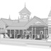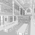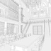洋館・図書館/内装あり/舞踏会場/シャンデリア/椅子/机/本棚/本/扉/梯子