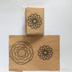 内トロコイドのグラフの絵柄の紙製ブックカバーです。 ブックカバーのサイズはA4判。天地左右を折って文庫のカバーとして使うことができます。 絵柄の違う5枚で1セット。 トロコイド (trochoid) とは、円をある曲線(円や直線はその特殊な場合)にそってすべらないように転がしたとき、その円の内部または外部の定点が描く曲線。円の内周にそって動かしたものを内トロコイド(またはハイポトロコイド)といいます。定円の半径、動円の半径、動円の描画点の半径の比率によって、さまざまな曲線が描けます。この内トロコイドの糸掛けバージョンの絵柄を使ってブックカバーにしました。 使用した用紙はクラフト紙(ブラウン)と再生紙(コピー紙よりやや厚く、黄味がかった白)の2タイプ。お好みのほうをお選びください。ブックカバーとして使うだけでなく、小物の包装紙、写真撮影の背景紙などアイデア次第でいろいろ活用できます。折らずに発送します。 【素材】 クラフト紙 厚さ0.11mm 再生紙 厚さ0.10mm 【サイズ】 A4判(幅297×高さ210mm)×5枚 【購入の際の注意点】 市販の用紙にレーザープリンタでモノクロ印刷したものです。 写真と実物では多少色味が異なる場合があります。