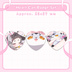 ① Manururu Nekoko Birthday 2025 Voice ・Voice Track 1 ・Voice Track 2 ・Voice Track 3 ・Bonus Track ② Spiritmate Eye Mask ・Approx. 22.5x12cm ③ Large Rubber Desk Mat ・Approx. 70*30cm*5mm ④ Acrylic Diorama ・Main body: Within W195 × H120 mm ・Base: Within W205 × H50 mm ⑤ Heart Can Badge Set ・Approx. 53x57 mm ⑥ Set Bonus: Cheki-Styled Card with handwritten autograph ・Approx. 76x102 mm