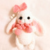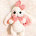 ✿ あみぐるみうさぎ * リボンと2wayマフラー付き * White × Peach Pink ✿