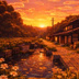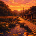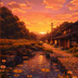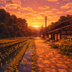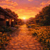 【夕】マイクラ風 田舎背景素材|やさしい夕空とノスタルジー|全18枚