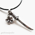 日本刀と桜のレザー調ネックレス【長さ変更可】