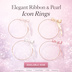 【アイコンリング】リボンとパールの上品アイコンリング4点セット|透過PNG