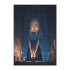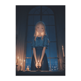 ポスター - B2この商品はpixivFACTORYで作られた商品です。サンプル画像は完成イメージのため、実物と異なる場合があります。 キャンドルの小さな灯りが、静かな夜の室内をやさしく照らすワンシーンを描いたイラストです。 下からの柔らかな光が、穏やかな表情と透明感を引き立て、幻想的で落ち着いた雰囲気を演出しています。 夜の静寂や心を整える空間づくりに寄り添う作品です。