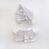 受注商品ですので下記事項を必ずお読みの上ご注文ください ・お届け期間を考慮して数に余裕を持ってご用意しておりますが、上限がございます。 ・お届けまでに最大3ヶ月ほどかかります。 ・ご注文順ではなく、ご用意でき次第順次発送させて頂きます※ ※オールインから優先製作、発送予定 ・受注受付期間中、追加注文も可能ですがシステム上同梱は承れません。 ・資材は余裕を持って発注しておりますが、途中で不足となり再発注が難しい場合や、諸事情により製作が困難となった場合はご連絡後にキャンセル処理をさせて頂きます。 ・受注商品お届け前に他のぬい服を製作、販売することがございます。 --- カントリーチェックワンピース 無属性ぬいぐるみ 10cmが 着用できるお洋服のセットです 1.襟とリボン付きふわふわワンピース 2.ハーフボンネット 上記2点セット 1.襟とリボン付きふわふわワンピース 後ろ開き(マジックテープ着脱) 裏側全体に白い裏地がついております。内スカートにはふわふわフリル付きで、1枚で可愛いワンピースです。 ※商品写真「みどり」は販売品より着丈が長いです。他のお色の着丈をご参照ください。 2.ハーフボンネット ゴム着脱が可能なボンネットです。大きめサイズなのでお耳のある子も可愛くご着用頂けます。(頭の小さい子にはズレやすく感じるかもしれません) 内側に白いコットンレースを使用していますが、一部生地がぬいぐるみに当たります。2週間着用し、色移りしないことを確認しておりますが保管状況により必ずではないことをご了承ください。 オールイン特典が2種類ございます。 1.特典付き(5着) 4色+むらさき1色の計5着 生地のカラバリにはないのですが、個人的に欲しくて製作したお色です。 数量限定でオールイン特典として特別価格にて追加購入が可能です。 チェック柄が異なります。生地の質感は似ていますが、別の生地ですのでご了承下さい。 こちらの特別セットは今回のみ、紫色の今後の再販、単品販売はございません。 2.オールイン(4着) 単品注文よりお安くご購入いただけます。 全体的にやや大きめにパターンを引いています。 小柄な子には大きく感じるかもしれませんが、 比較的体型問わず着用出来るお洋服です。 しかし無属性ぬいぐるみは個体差が大きい為必ず着用できるとは限らず、またシルエットが変わる可能性がございます。 ハンドメイド商品です。 一つ一つ丁寧に製作しておりますが、工場製品ではございません。以下の点をご了承の上、お買い求めください。 ・完成品は数ミリの誤差が生じる可能性がございます。 ・マジックテープは粘着力がやや弱めに感じられます。シルエットが綺麗に出るようにドール服用の薄い物を使用しているので欠陥ではございません。 ・ミシン、手縫い、ボンド、ほつれ止め液を使用して製作しております。 ・洗濯は汚れた所のみの部分洗い、もしくは優しく手洗いをお願い致します。洗濯機や乾燥機の使用はお控えください。洗濯によりシルエットや生地の風合いが変わってしまう事をご了承ください。 ・返品返金につきましては「特定商取引法に基づく表記」を事前にご確認ください。 ・写真と柄の出方が異なります。柄により大きくイメージが変わる場合は個別に写真を掲載します。 ・価格は予告なく変更させて頂くことがございます。
