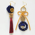 ゴールデンカムイの主人公 杉元佐一をイメージした耳飾りです。 日本の伝統工芸である水引を使用しています。 明治時代を想起させる2色の水引と臙脂色(えんじ色)のタッセルを用いて、杉本をイメージしたアンティーク調のデザインにしました。 梅結び、二重叶え結び、相生結び、玉結びの4種の作品に掛けた縁起の良い、希望のある未来を想起させる結び方を使用しています。 相棒感を出したかったので、別ページにあるアシリパさんイメージの耳飾りと少しデザインを似せて作りました。 ピアスとネジバネ式イヤリングからお選びいただけます。 水引は軽い素材なので、重さは気になりません。金属パーツは主に真鍮やメッキを使用しているため、アレルギーのある方はご注意ください。 ハンドメイドのため繊細な作りをしています。強い衝撃、水濡れにはお気をつけください。 お使いのモニター環境により色味が違って見える場合があります。ご了承ください。 【サイズ】 タッセル側の長さ…約8cm(ピアス金具含まない) 【発送】 あんしんBOOTHパック 一律370円 ※ハンドメイドのため、繊細な作りをしています。強い衝撃、水濡れ等にはお気をつけください。 ※当店の商品の転売・模倣はおやめください。 ※お使いのモニター環境により色味が違って見える場合があります。ご了承ください。