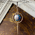 蒼い月が浮かぶ天球儀ネックレス|三日月と満月が切り替わる|スチームパンク調・UV色変化